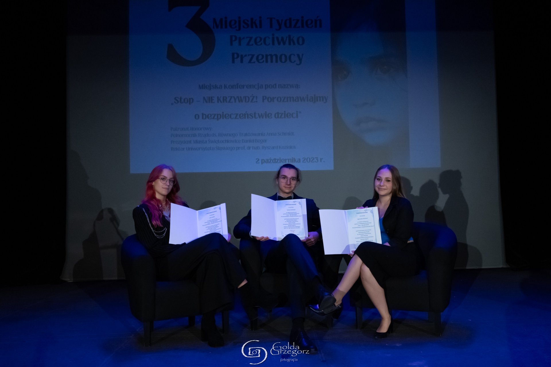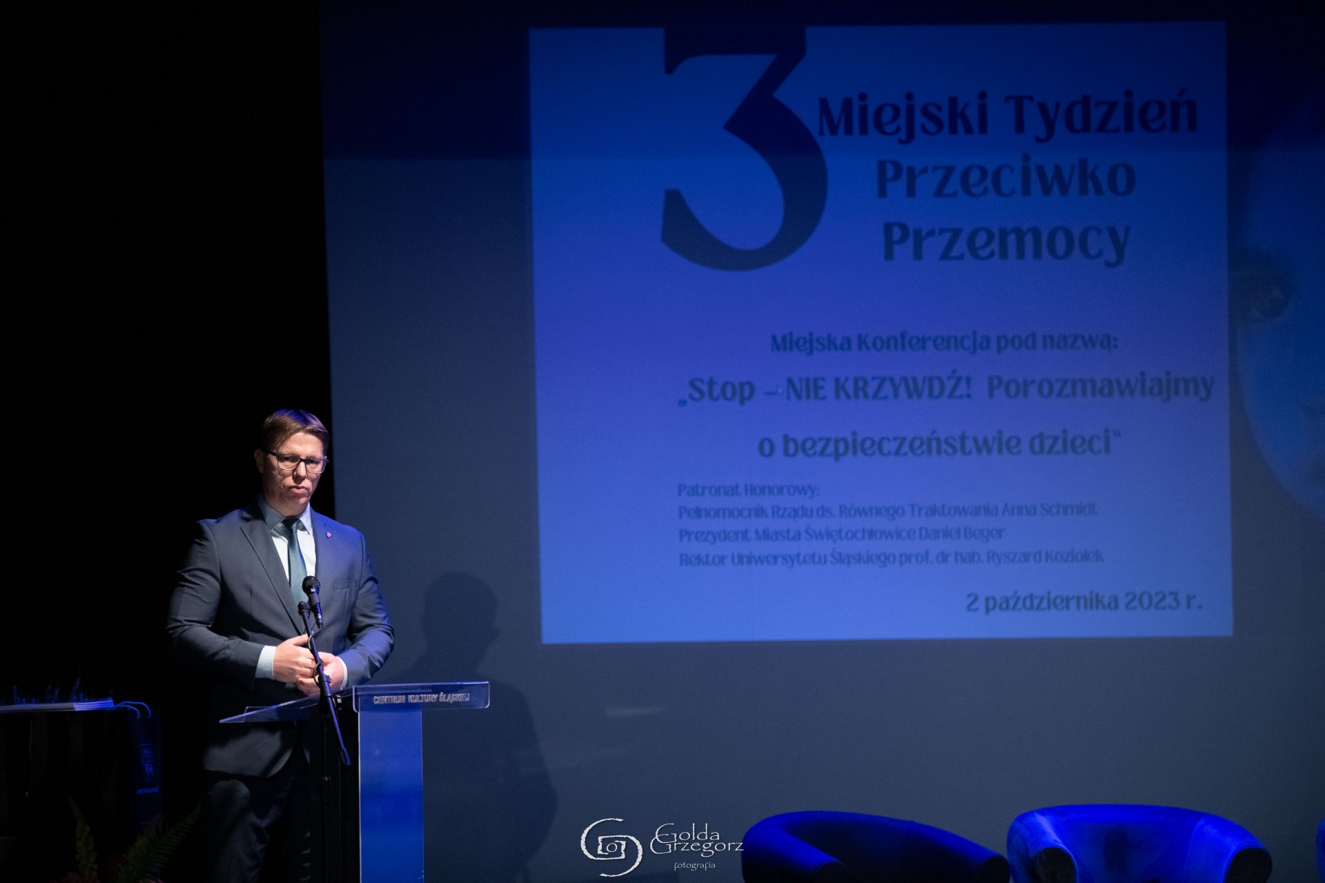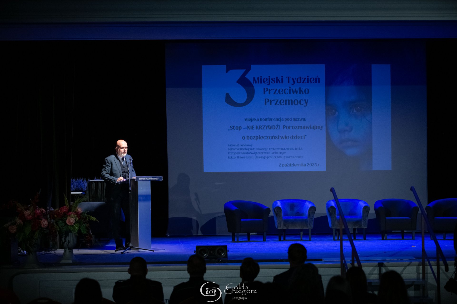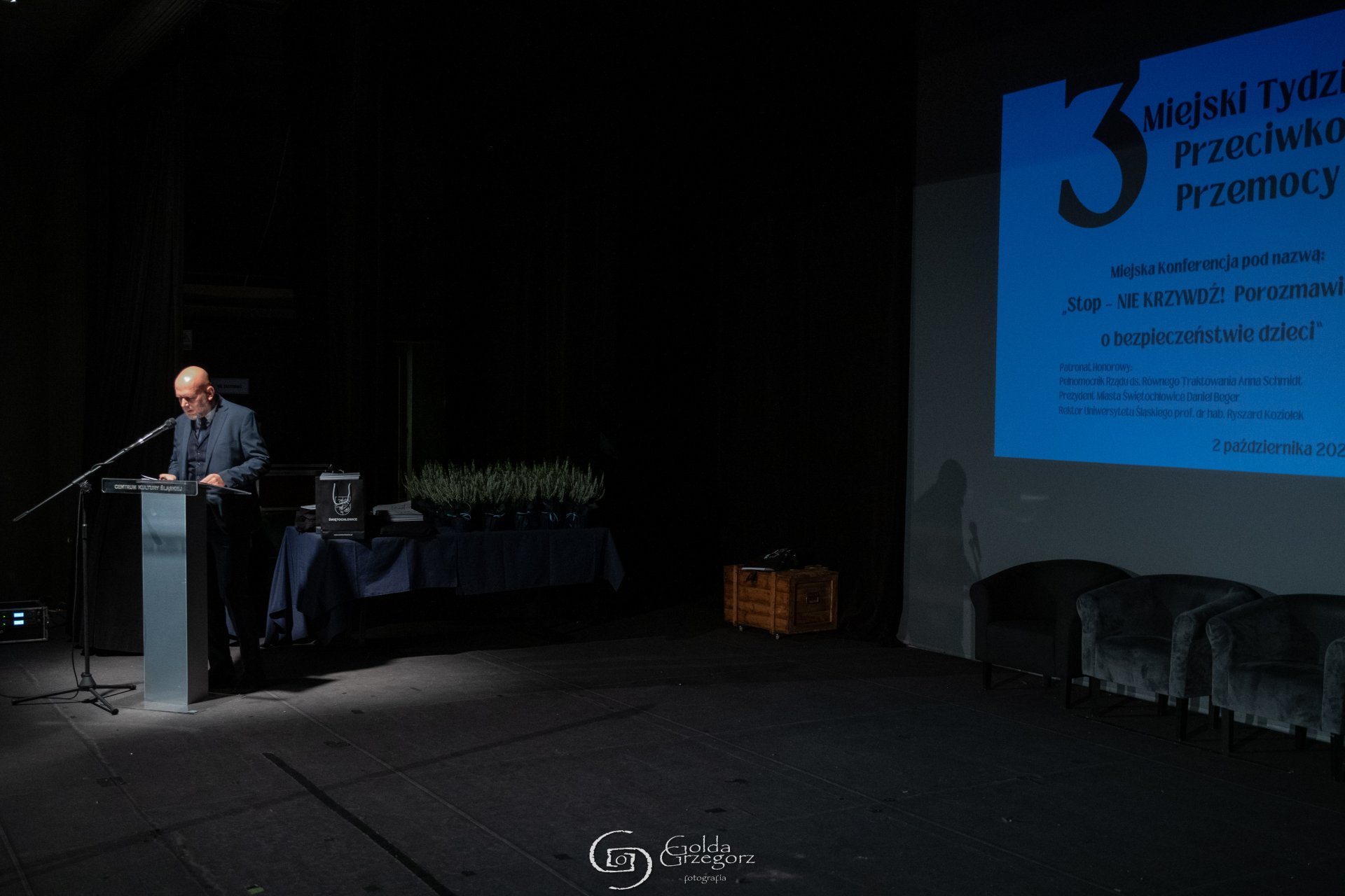 Tego dnia właśnie, Trzecią Miejską Konferencją "Stop – NIE KRZYWDŹ! Porozmawiajmy o bezpieczeństwie dzieci”, zainaugurowaliśmy Trzeci Miejski Tydzień Przeciwko Przemocy w Mieście Świętochłowice. Trzeci Miejski Tydzień Przeciwko Przemocy patronatem honorowym objęli: Anna Schmidt - Pełnomocnik Rządu ds. Równego Traktowania i Daniel Beger - Prezydent Świętochłowic. Patronat nad konferencją objął Rektor Uniwersytetu Śląskiego, prof. dr hab. Ryszard Koziołek.