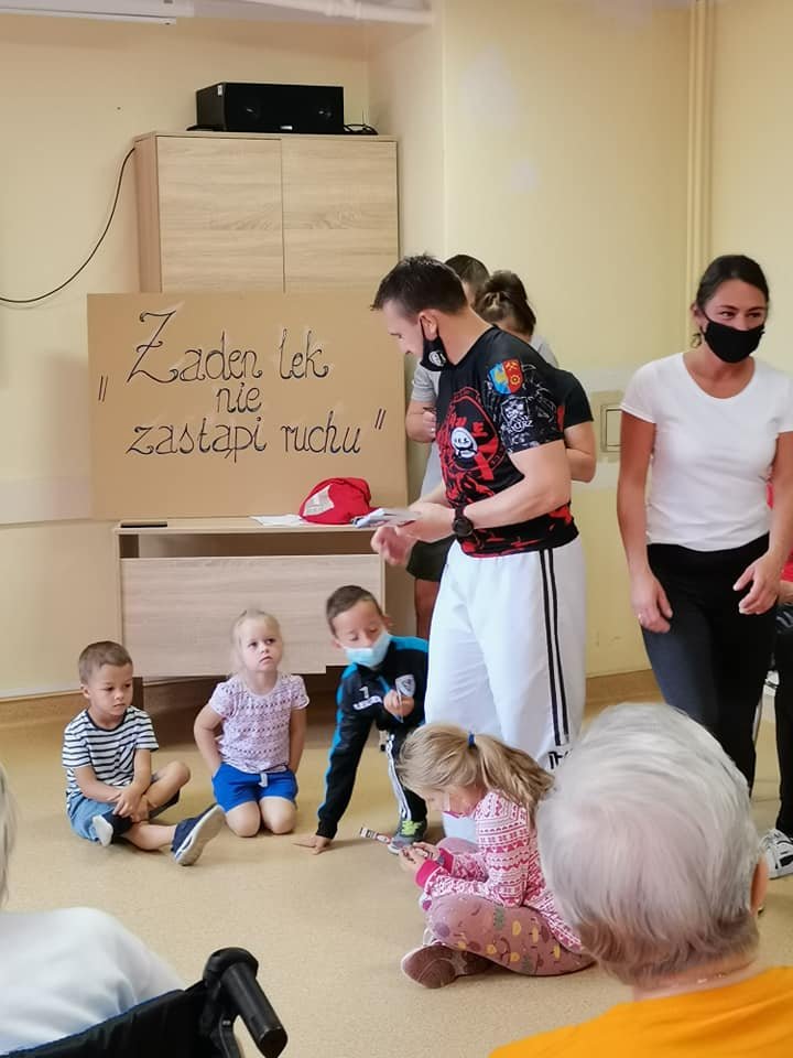 W ramach tego wydarzenia zorganizowaliśmy wspólnie imprezę pod nazwą „Międzypokoleniowy trening z Mistrzem”. To zachęta do aktywności w każdym wieku – od juniora do seniora, każdy wedle swoich możliwości. Zaproszeni zostali także do wspólnego Treningu Uczestnicy oraz Pracownicy Dzienny Dom ,,Senior+" w Świętochłowicach. Trening został przeprowadzony przez Mistrza Taekwon - do, Pana Krzysztofa Książek. Oczywiście bardzo dziękujemy Panu Krzysztofowi za poświęcony nam czas. Pan Krzysztof Książek od 1997 r. prowadzi w Świętochłowicach zajęcia z dziećmi i młodzieżą oraz organizuje zawody. W trakcie swojej kariery trenerskiej wyszkolił wielu mistrzów Polski i Śląska. Jego podopieczni zdobywali medale mistrzostw kraju. Pan Krzysztof to również złoty medalista, Mistrz Polski. Mistrz – Pan Krzysztof Książek - pobudził nas dziś do aktywności fizycznej! Było międzypokoleniowo – od najmłodszych, co sobie trzy lata liczą do tych liczących prawie dziewięćdziesiąt wiosen… Nasz Mistrz pokazał, że można! Każdy znalazł swoją przestrzeń, poruszał ciałem na ile się da! Bo przecież właśnie o to chodzi!